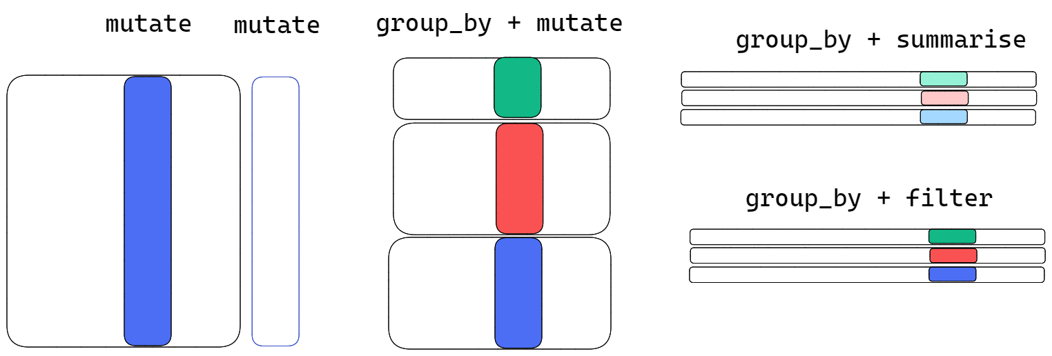 | 6 | Tue, May 21 | applying functions to targeted columns and groups | summarise group_by | NA |