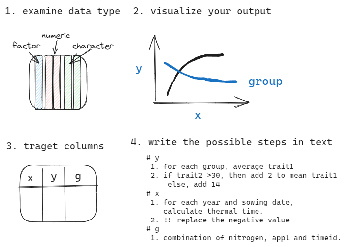 | 5 | Tue, May 14 | column editing and column replacement | NA | phenotyping start! |